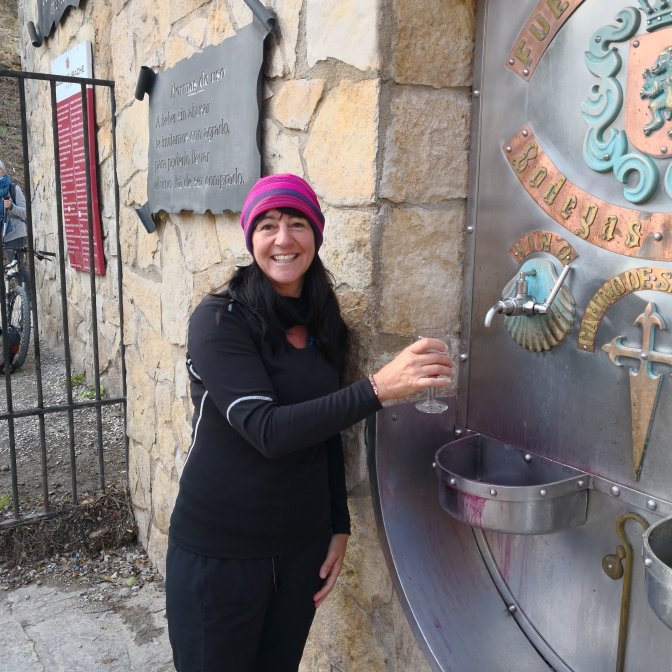 Awesome day, heel slightly better. Totally forgot to brush my hair today, by the time I remembered brush was in bottom of pack, oh well. Another big climb out of town and we hit the wine tap! A tap on wall that flows red wine, I love Spain.