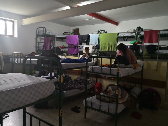 It was 8km of city walking to get out of Leon and then walking beside a highway most of the day. Definitely zone out time, headphones on so you don’t hear cars and just walk. Stopped for lunch with Ron and Kathrynne in a paddock under a tree, bread, chorizos, boiled egg, the best! Tiny little alburgue with about 20 beds in one room, am sure the bunks only had 5 springs (think I will take mattress off bed n put on floor)