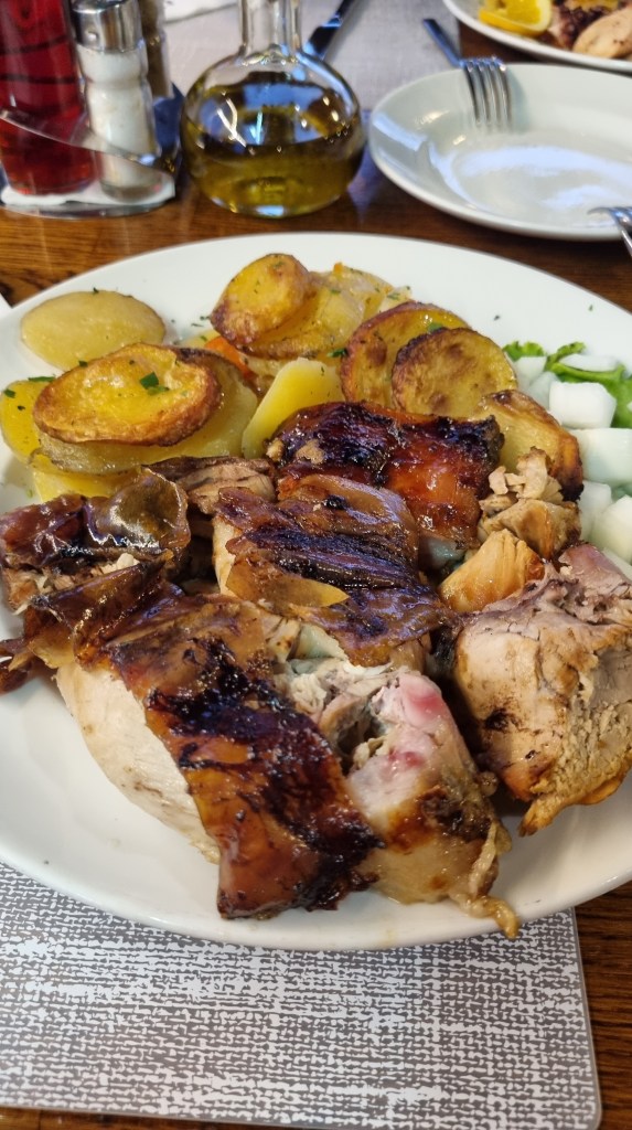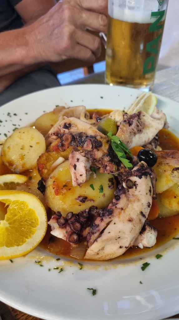 Our last night in Croatia we treated ourselves and ate out. 2 of the national dishes are suckling pig and octopus (cooked under the lid they say)